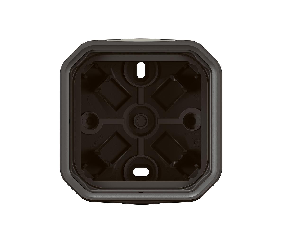 Boîtier 1 poste étanche IP55 Plexo pour l'installation en apparent de toutes les fonctions Plexo, équipé de 2 embouts à membrane souple 1 entrée - finition anthracite