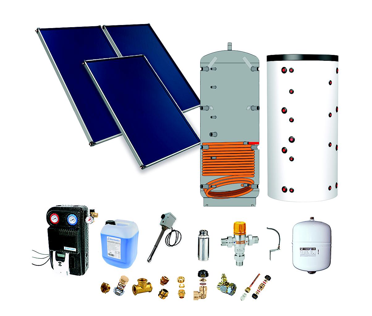 Pack F-SSC dble ballon-ECS 200L chauf.300L-3pann.-fix. toit. plat+ access.