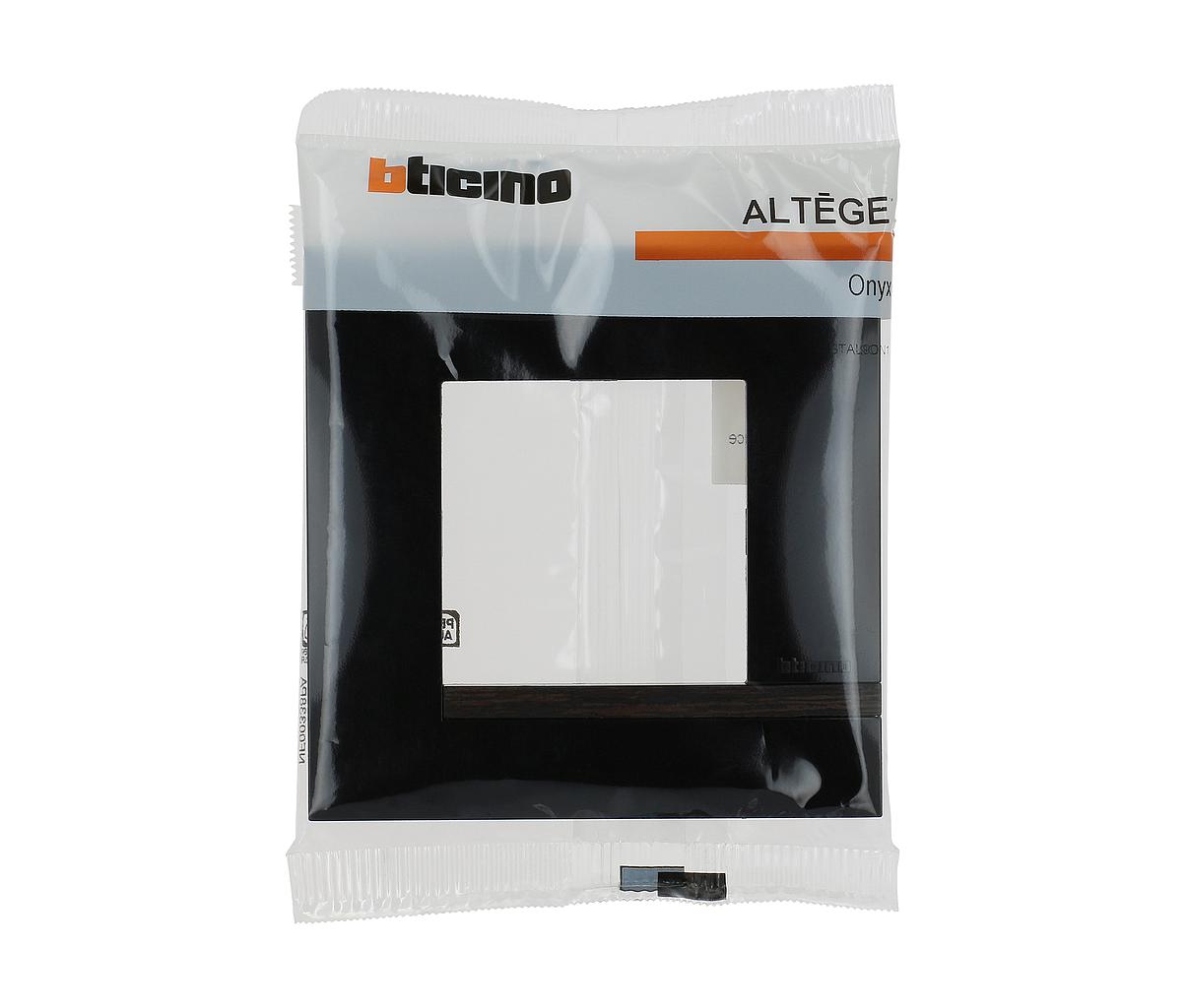 Plaque Altège Déco 1 poste Onyx - noir brillant avec liseré bois foncé