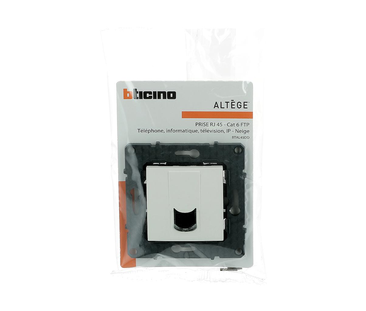 Prise multimédia RJ45 catégorie6 FTP Altège livrée avec enjoliveur finition blanc Neige et support, à équiper d'une plaque de finition