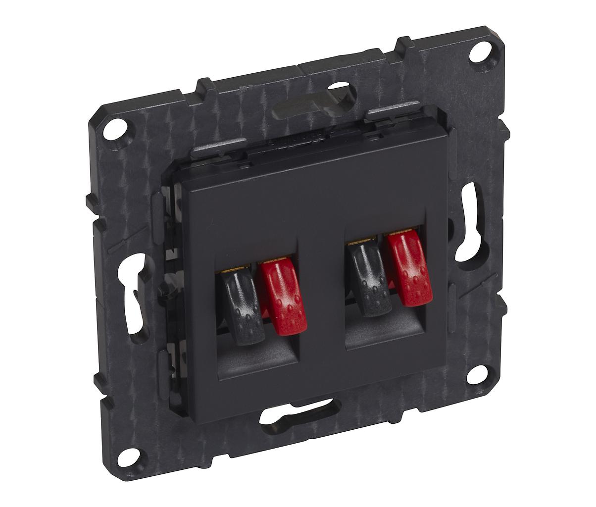 Prise double haut-parleur Altège livrée avec enjoliveur finition noir Nuit et support, à équiper d'une plaque de finition