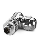 Connecteur M12, codage A, mâle coudé, 5P, à visser, bague inox, diam. 4 à 6 mm