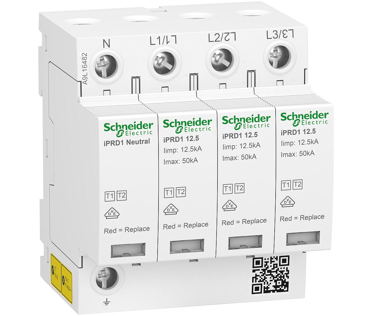 Le parafoudre iPRD1 12,5r est un produit modulaire de la gamme Acti9. En version débrochable de type 1 et 2, 3P+N, dédié aux installations exposées à un niveau de risque foudre maximal, il est doté d'un report de signalisation (TT-TN).
