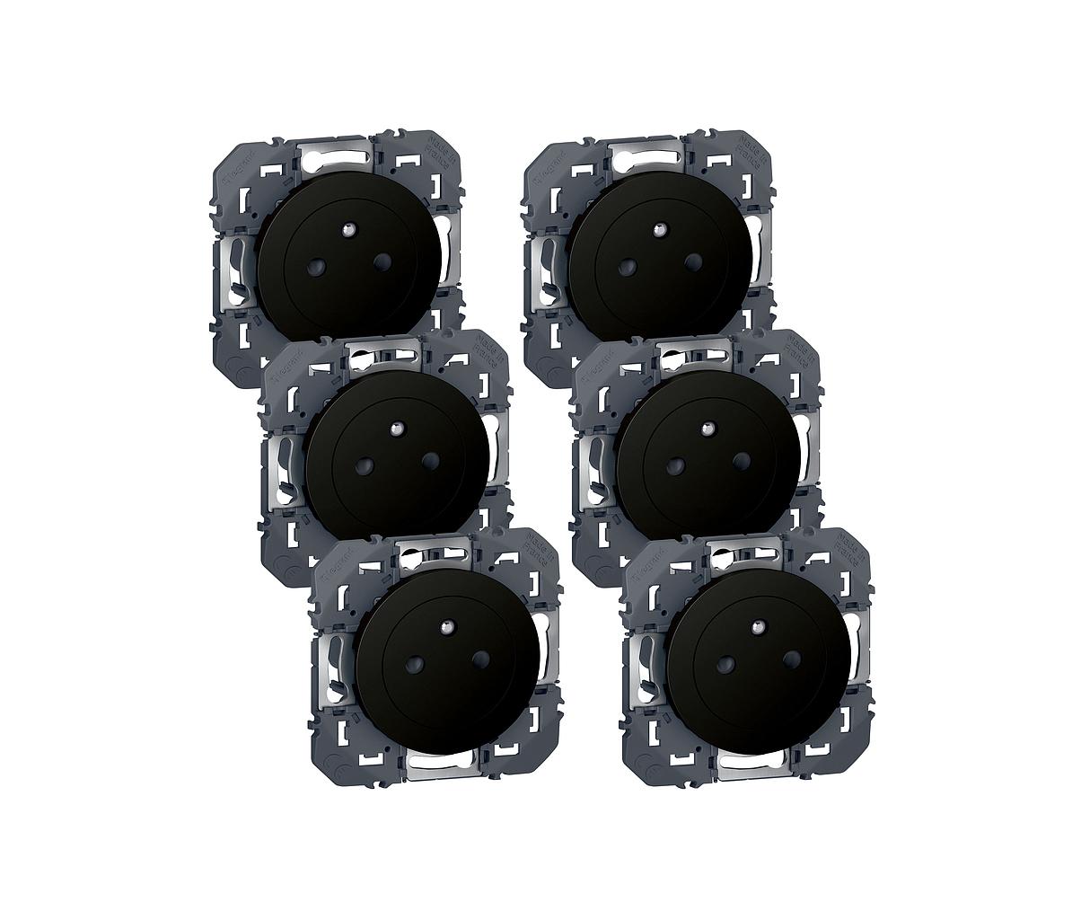 Lot de 6 prises de courant avec terre Surface dooxie - noir