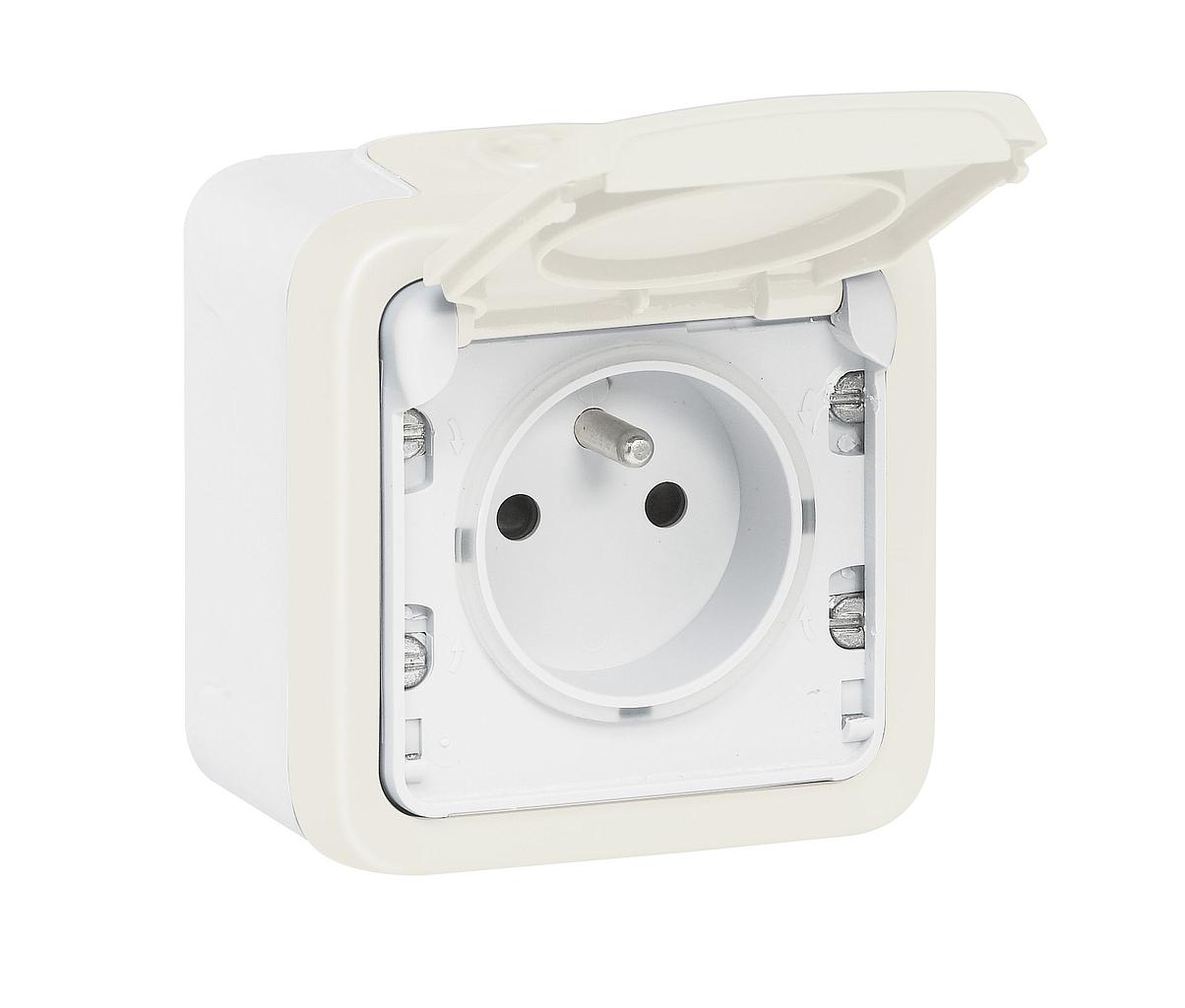 Prise de courant étanche volet de protection IP55 Plexo complet saillie - blanc