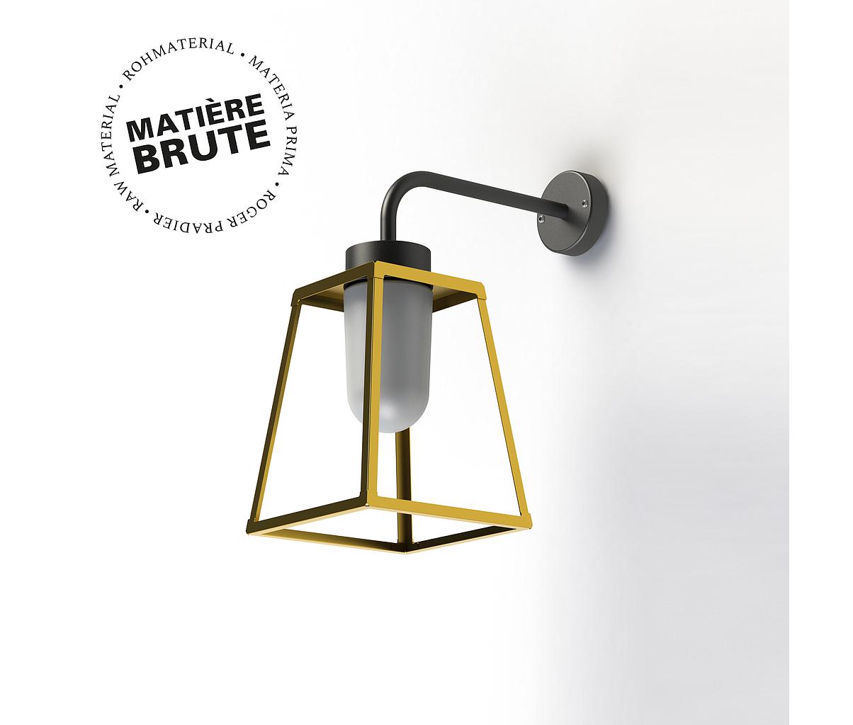 Applique descendante LAMPIOK 1,E27, IP65, Classe 2, diffuseur verre dépoli. Matière cage: Laiton brut 072 - Matière potence : Aluminium: Teinte RAL 7021 Gris noir 107