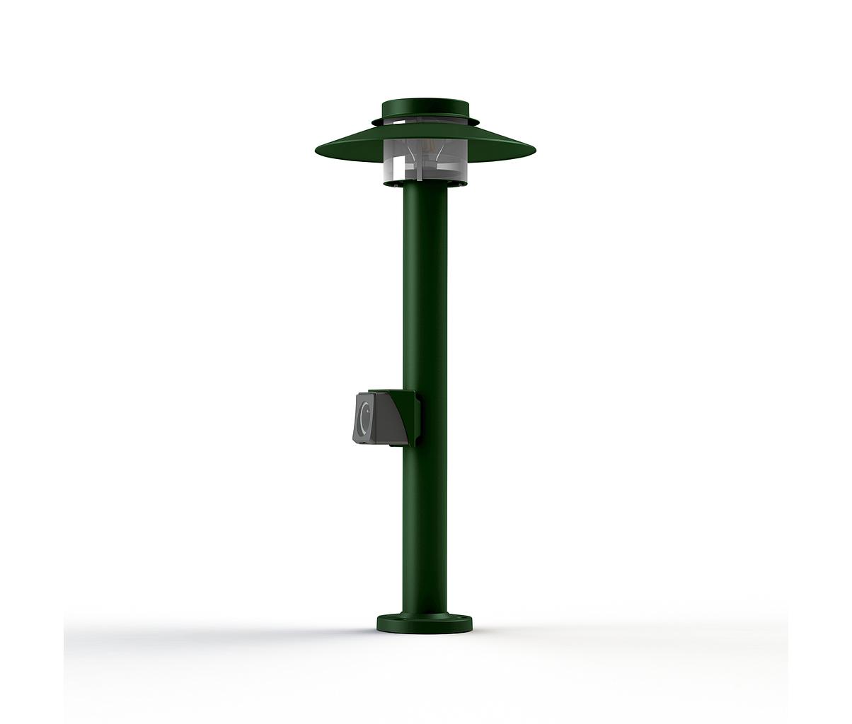 Borne KERLOUAN en aluminium, avec prise, hauteur 750mm, E27, IP44, classe 1, diffuseur polycarbonate clair. Teinte RAL 6009 Vert anglais 019. Garantie 25 ans anticorrosion sur aluminium