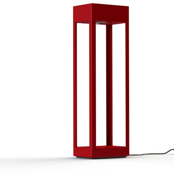 Borne nomade HOGAR en aluminium, hauteur 827mm, IP67, Classe 2, IK10, module Led intégré 16W 3000°K. Teinte RAL 3013 Rouge tomate 110. Garantie 25 ans anticorrosion sur l'aluminium
