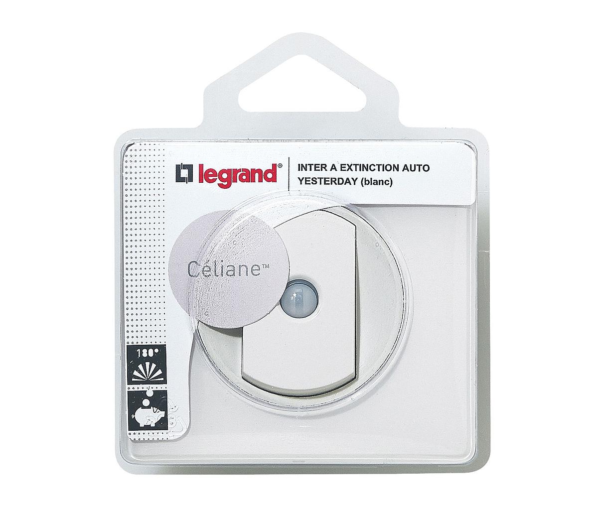 Interrupteur ou va-et-vient Intuition Céliane à extinction automatique au bout de 10 minutes sans détection de mouvement, connexion à bornes automatiques - livré complet prêt à installer avec support, enjoliveur et plaque de finition blanc